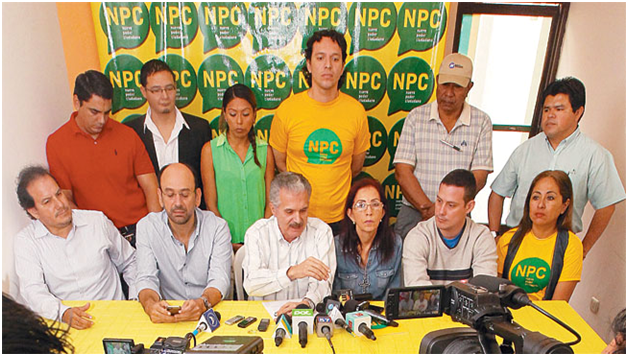 “¡Gobernador, gobernador, gobernador!”, corea un séquito de asambleístas departamentales cruceños, diputados y senadoras y militantes de Nuevo Poder Ciudadano (NPC). Se refieren al senador Germán Antelo, líder de la sigla regional, que ayer reveló que su partido definió que sea candidato a gobernador de Santa Cruz en 2015, luego de oficializar la ruptura de su alianza con el jefe de Unidad Nacional (UN), Samuel Doria Medina, candidato presidencial que se unió al gobernador Rubén Costas a mediados de junio.