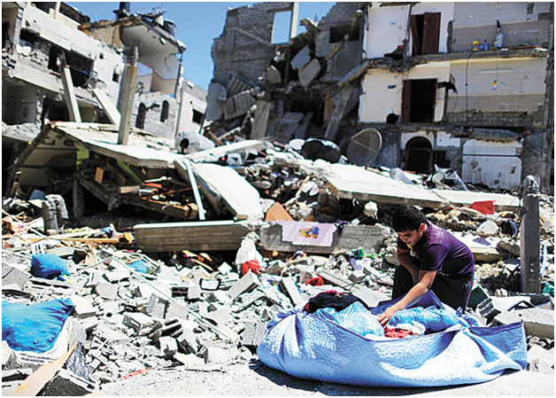 imageDestrucción. Un niño palestino recoge algunas de sus pertenencias; al fondo, las casas destruidas.