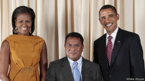Stephens posa junto a Barack Obama y su esposa MIchelle.