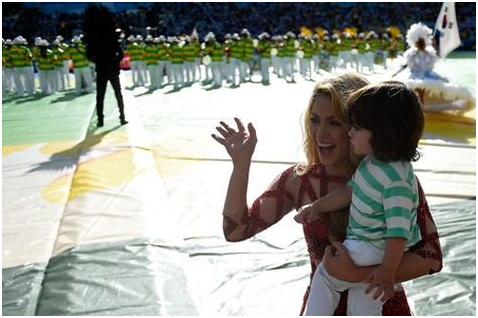 La cantante colombiana Shakira sostiene a su hijo Milán durante el acto de clausura del Mundial 2014 en el estadio Maracaná Foto: AFP.
