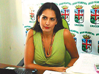 La diputada María Cristina Viscarra, que ocupaba la Vicepresidencia de la Brigada Parlamentaria Cruceña, asegura que le corresponde asumir la Presidencia de dicho ente tras la renuncia de Andrés Gallardo, que junto a otros siete parlamentarios del MAS y de Convergencia Nacional buscarán la reelección.