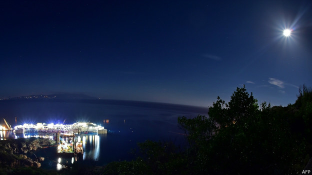 Si se la ve en el horizonte, aparece todavía mucho más grande y más si se la mira a través de árboles.