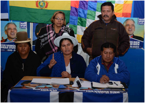 La jefa de campaña del Movimiento Al Socialismo (MAS), Leonilda Zurita (centro). Foto ABI.