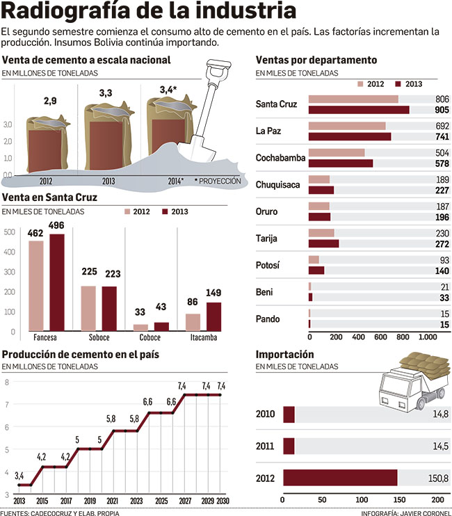 En el primer semestre de 2014, Soboce ha producido y comercializado 700.000 toneladas, equivalentes a 14 millones de bolsas de cemento. “Estamos en condiciones de acompañar el crecimiento de la demanda del mercado que se proyecta en alrededor del 10%”, dijo el gerente nacional de ventas, Marcos López.