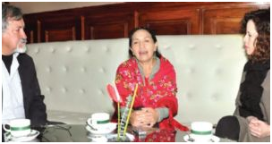 Tomasa Yarhui con periodistas de Página Siete.