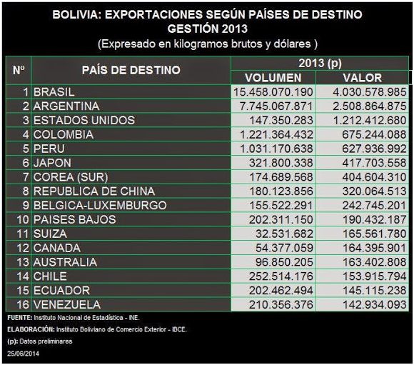 “En lo que respecta a Estados Unidos, Colombia y Perú hay que destacar que no son países a los que vendemos gas, de tal manera que si desinfláramos la estadística de lo que hemos exportado a Brasil y a Argentina, de lejos Estados Unidos sería el principal comprador de más de 300 productos bolivianos, y una gran cantidad de ellos con valor agregado, cosa que no encontramos la posibilidad de realizar cuando queremos vender a Brasil y Argentina que son mercados restrictivos, son mercados proteccionistas, lo que no ocurre con Colombia y Perú que son destinatarios de productos no tradicionales del área alimenticia”, indicó.
