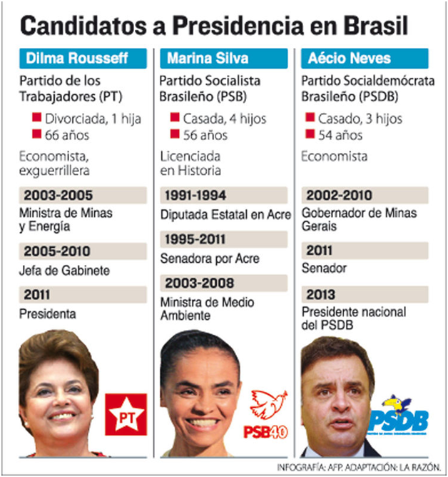 Los aspirantes a todos los cargos debían solicitar su inscripción ante el Tribunal Electoral hasta el 5 de julio de este año y una jornada después comenzó la campaña proselitista en todo Brasil, en pleno Mundial de Fútbol, según reportó la agencia Prensa Latina.