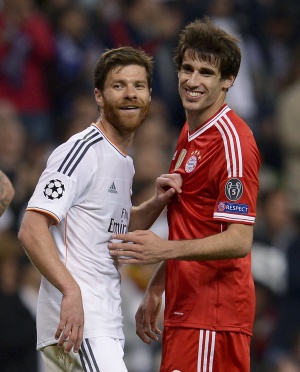 Alonso, junto a Javi Martínez, en un Madrid-Bayern. / DANI POZO (AFP)