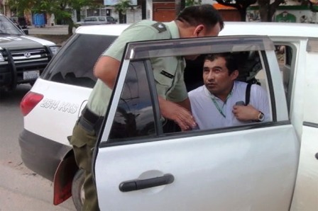 La Policía cuestiona otro fallo judicial. El colombiano Luis Fernando Salgado Valero (34), que el pasado 14 de mayo de 2013 arrebató con arma 450.000 bolivianos a una mujer que había retirado el dinero de un banco en la calle René Moreno, se sometió a un proceso abreviado y la juez 13avo de Instrucción en lo Penal, Livia Alarcón, lo sentenció a tres años de cárcel por el delito de robo agravado, en presencia de la fiscal Mirtha Mejía. El extranjero quedó detenido en flagrancia después del atraco luego que un equipo de prensa de Cadena A le montó un seguimiento segundos después de haber cometido su ilícito. Durante su huida en moto, el extranjero junto a su cómplice se dirigieron hasta el estadio «Tahuichi» Aguilera donde, tal cual muestran las cámaras, se colocó una chamarra, guardó el dinero en una especie de bolsón y para despistar a la Policía abordó un taxi donde fue finalmente detenido (foto). El 17 de mayo, la juez Estrella Montaño ordenó su detención preventiva en Palmasola por robo agravado.