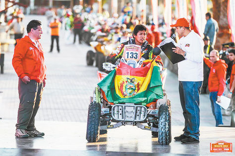 Los bolivianos Juan Carlos Salvatierra (foto), Fabricio Fuentes (ambos en motos), Wálter Nosiglia, Sergio Mita, Leonardo Martínez (cuadriciclos), Marco Bulacia, Ernesto Eterovic y Luis Barbery (autos) están inscritos para el Dakar 2015.