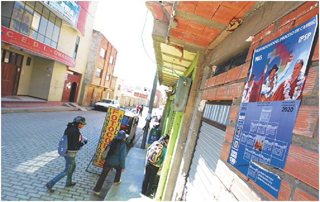 ALTIPLANO. En Achacachi solo se observan banderas y propaganda del MAS y de su candidato Evo Morales. La instrucción de los ponchos rojos es mantener el voto por los postulantes del partido oficialista