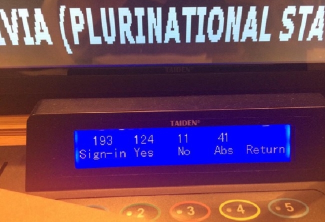 Sacha Llorenti, embajador de Bolivia ante la ONU publicó en su Twitter los resultados de la votación. Foto: @sachallorenti