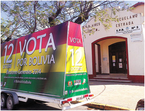 El proceso electoral boliviano se ha puesto en marcha en Buenos Aires y no pasa desapercibido. La publicidad del Tribunal Supremo Electoral (TSE) se puede ver en las lunetas de los colectivos que circulan por calles y avenidas porteñas. Los jingles de difusión salen a cada hora en las distintas radios dirigidas a la colectividad. Se usa la red social de Facebook Bolivia vota en Buenos Aires, mensajes de texto de whatssap y líneas telefónicas con información sobre el proceso electoral del venidero 12 de octubre.