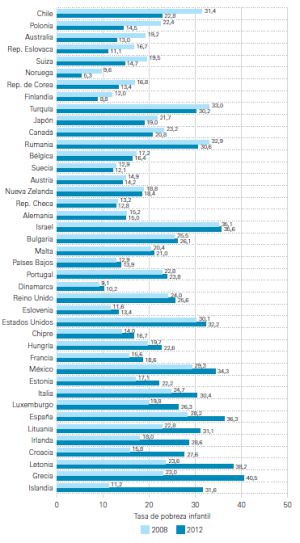Variación de la tasa de pobreza infantil entre 2008 y 2012. Fuente: UNICEF.