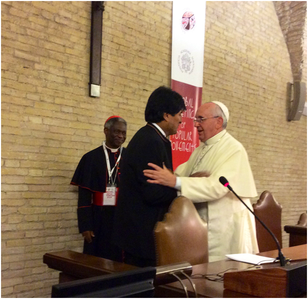 «Es el único Presidente que ha sido invitado, participan más de 150 organizaciones de los movimientos sociales, en este encuentro como parte de la Iglesia Católica. El presidente Morales es el único presidente que participa dentro de los 30 panelistas que van a dar su perspectiva sobre la exclusión», agregó.