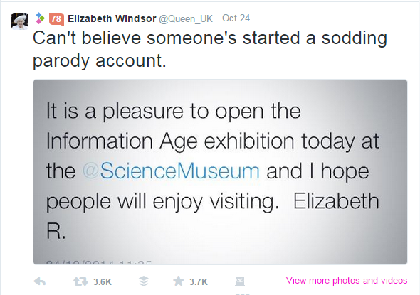 La cuenta no oficial de la Reina: @Queen_UK, no desaprovechó la ocasión de parodiar el episodio.