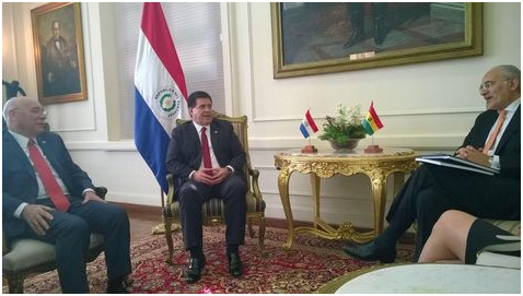imageEl portavoz de la demanda marítima Carlos Mesa en reunión con el presidente de Paraguay, Horacio Cartes. Foto tomada de la cuenta de Carlos Mesa