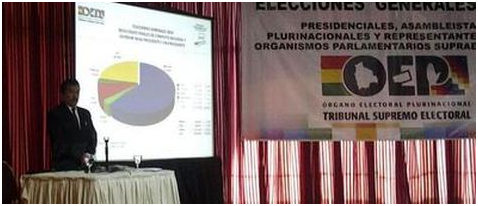 Al 100% del cómputo oficial difundido hoy por el Tribunal Supremo Electoral (TSE), el Movimiento Al Socialismo (MAS) de Evo Morales logró la victoria en las últimas elecciones nacionales con el 61,36 % de respaldo y el líder indígena se consolidó como el reelecto presidente para el periodo 2015-2020 . Además, el oficialismo logró los dos tercios de votos en la Asamblea Legislativa Plurinacional al haber obtenido 25 representates en la Cámara de Diputados y 89 en la de Senadores.