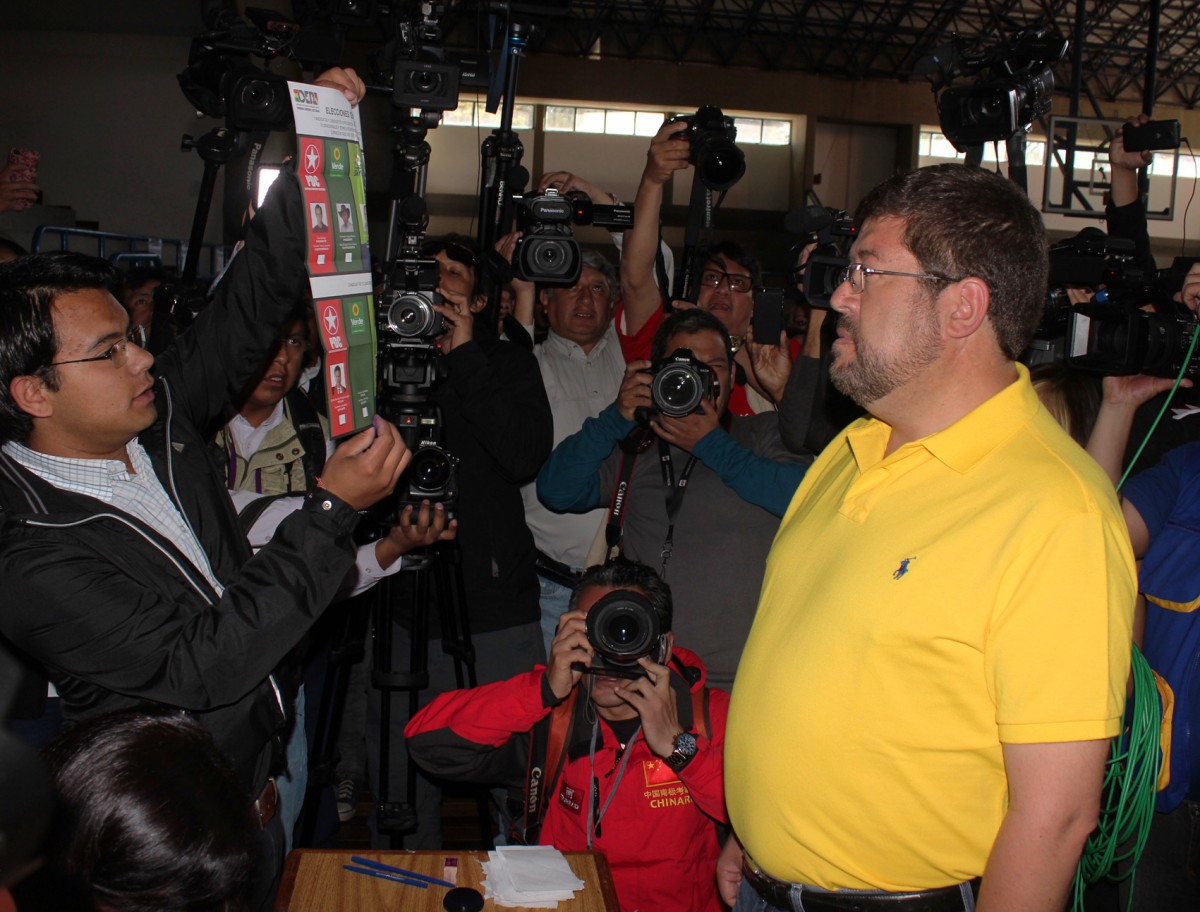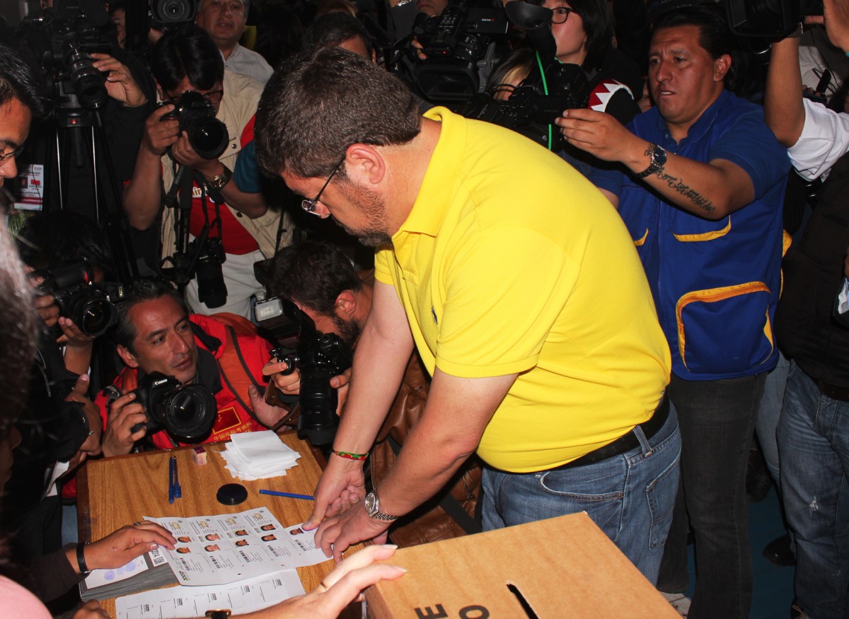 Página Siete digitalEl candidato a la presidencia por la Unidad Demócrata, Samuel Doria Medina, emitió su voto en el Colegio Boliviano en la Ciudad de La Paz a las 9:15am.Doria Medina se presentó emocionado e invitó a la población a sufragar «los bolivianos van a decidir su futuro y el futuro de nuestra patria, acudan los más pronto posible”, sostuvo.Además de felicitar a los jurados electorales, el candidato expresó su confianza hacia los ciudadanos «en Bolivia son los ciudadanos los que manejan el proceso electoral y en ellos si confiamos, el tribunal no es imparcial”.
