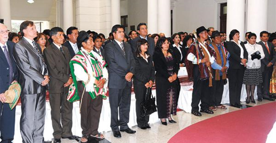 Momentos en que Tordoya (quinto desde la izq.) juró en Sucre al cargo de magistrado del TSJ