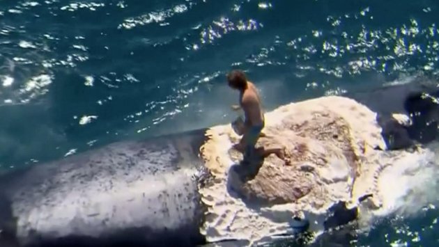 Un joven se puso a «surfear» sobre una ballena muerta. Y se llevó el susto de su vida. Mirá las imágenes.
