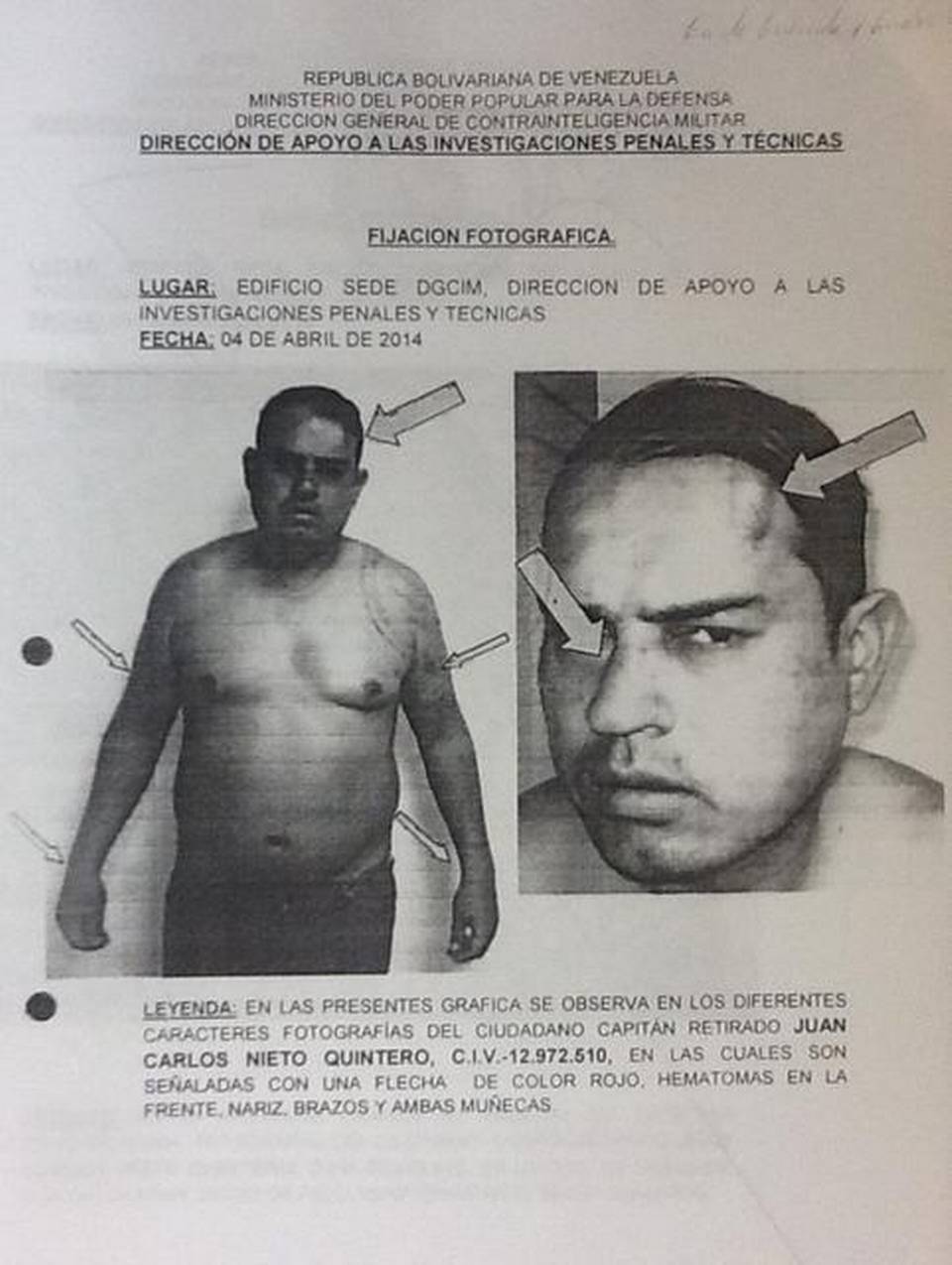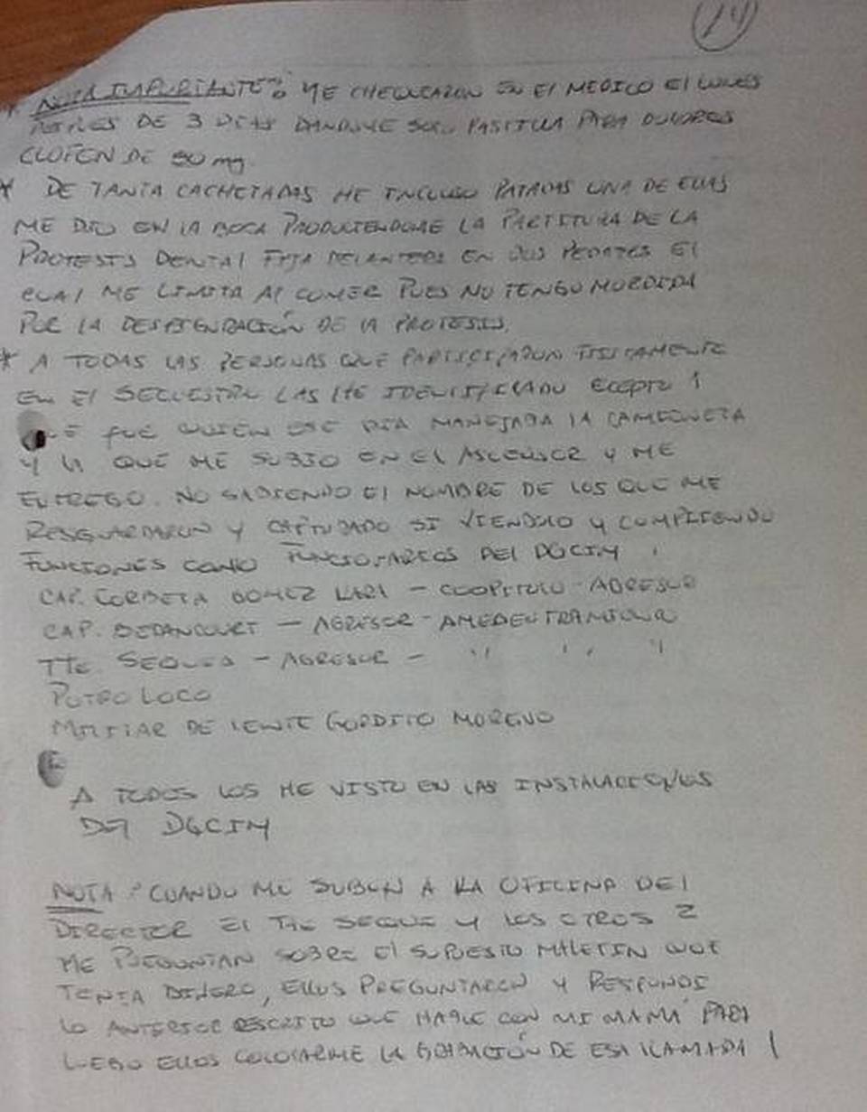 Según el testimonio que posteriormente brindó Nieto a las autoridades, el capitán retirado fue sometido por tres agentes a más de 30 horas de tortura, que incluyeron brutales golpizas.
