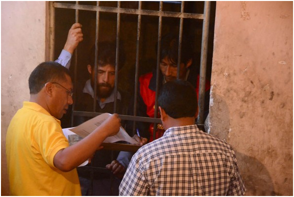 Los dos dirigentes de Shinahota detenidos en la Felcc, ayer. Foto Los Tiempos
