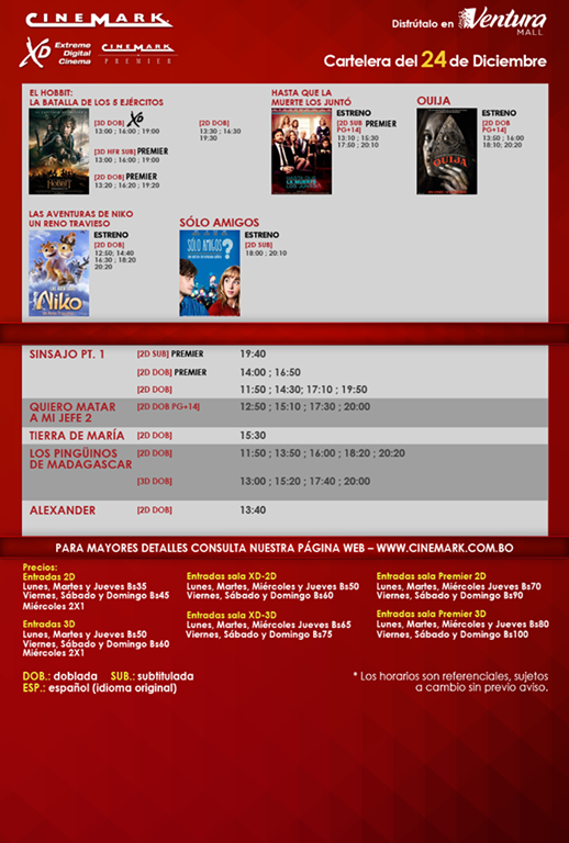 Cartelera de CineMark del 24 de diciembre