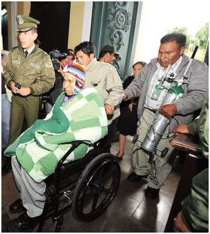 Página Siete. Cusi, en silla de ruedas, es llevado al Tribunal de Sentencia.