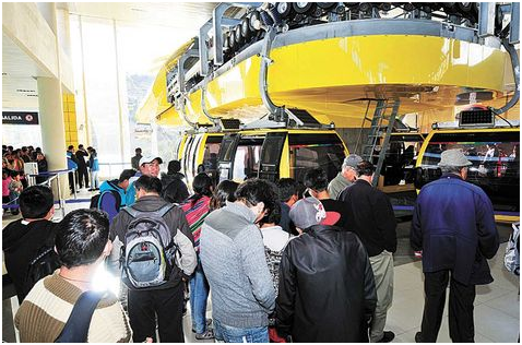 Feriado ocasionó largas filas en teleférico La Paz-El Alto