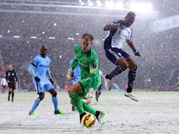 WEST BROMWICH, Ingaterra. Dic. 26, 2014.- En el tradicional Boxing Day, el Manchester City no acusó la presión al que le sometió el Chelsea, venció 3-1 al West Brom en medio de un campo lleno de nieve y se mantuvo a la zaga de los Blues.