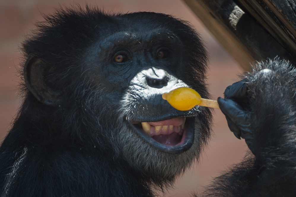 El termómetro marcaba 40 grados, Paulinho tomó dos helados y salió corriendo a refugiarse en la sombra a devorarlos: este chimpancé y el resto de los animales del zoológico de Río de Janeiro reciben una dieta de congelados para aliviar el infernal calor del verano carioca.