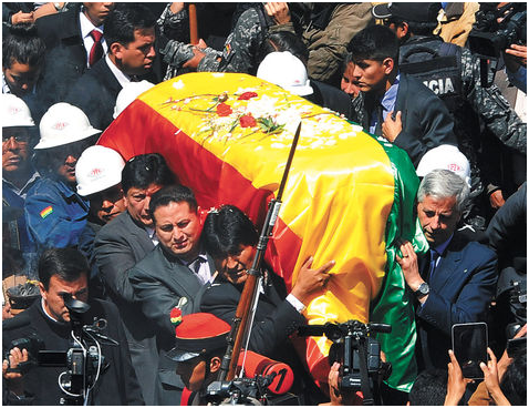 Tras la misa, el féretro del difunto fue sacado en hombros del Palacio de Gobierno por el presidente Morales, el vicepresidente Álvaro García Linera, el ministro de la Presidencia, Juan Ramón Quintana, y ejecutivos de YPFB, quienes fueron escoltados por soldados del Batallón Colorados de Bolivia.
