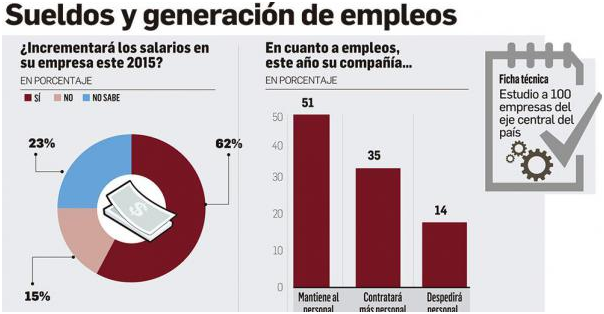 En cuanto a las proyecciones para este año, el 62% de las empresas acatará la disposición del Gobierno en materia salarial, el 23% aún no tiene definido el tema y un 15% ha decidido no subir los sueldos.
