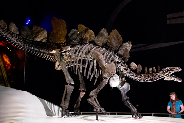 Con el 85 por ciento de su esqueleto intacto -más que cualquier otro de estegosarurio en el mundo-, este fósil, de 5,6 metros de alto y 2,9 metros de largo, está compuesto por 360 huesos y está expuesto en la Sala de la Tierra del museo de la capital británica.