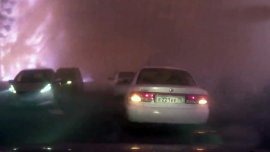 El video, registrado por la cámara ubicada en el frente de un auto, muestra la desesperación de los conductores, que avanzan tímidamente, se detienen, dan media vuelta y no saben qué hacer paraescapar de las llamas, que aparecen por todas partes.