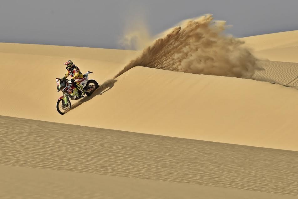 El piloto boliviano no sólo fue el primero en llegar a la meta en la categoría 450 cc, sino que además saltó del tercer al segundo lugar en la clasificación general y, lo más importante, acortó distancia y está a menos de dos minutos del líder de la prueba, el polaco Jacub Piatek.