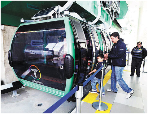 imageUsuarios suben a una cabina de la Línea Verde de Mi Teleférico. Alejandra Rocabado-Archivo.