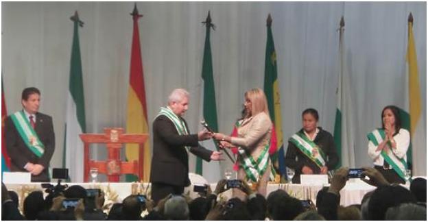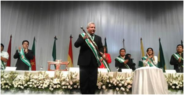 La autoridad recibió el bastón de mando departamental y la banda con los colores de la bandera cruceña. Cumplirá funciones en el periodo 2015 – 2020, constituyéndose en una de los principales líderes de la oposición en el país.