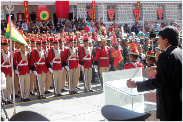 El presidente Evo Morales habló de la demanda marítima ante la Corte Internacional de Justicia (CIJ) en el acto de recordación de los 206 años de creación del Regimiento Colorados de Bolivia, que participó de la Guerra del Pacífico.