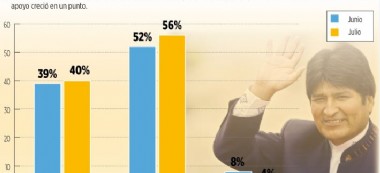 La consulta fue realizada por Mercados y Muestras SRL en el área urbana y poblaciones rurales del país. El 58% no está de acuerdo con que se cambie la Constitución para conseguir ese objetivo. La mitad de los encuestados no cree en la independencia del nuevo TSE.Página Siete / La PazLa encuesta de la empresa Mercados y Muestras  SRL para Página Siete, indica que el 56% de los consultados  no está de acuerdo con  otra reelección del presidente  Evo Morales frente a un  40% que respalda una nueva postulación.El mes de junio, Página Siete publicó otra encuesta en la que un 39% dijo que está de acuerdo con la reelección del Mandatario como lo plantearon sectores sociales y diputados del MAS.Es decir, hubo un crecimiento de un punto porcentual que respalda la propuesta de reelección. En junio, un 52% respondió que no está de acuerdo con una nueva postulación de Morales y en esta encuesta esta tendencia creció hasta el 56%.Una de las vías para posibilitar la reelección del Presidente, según el MAS, es la  modificación de la Constitución que establece una sola reelección continua.Para ajustar la Carta Magna se requiere de una iniciativa legislativa y un referendo aprobatorio. Frente a ese trámite, el  58%   de los encuestados  no está de acuerdo con la reforma frente a un  35% que sí está de acuerdo.El año pasado, Morales aseguró a medios de comunicación internacionales que él no pretendía quedarse  en el gobierno como presidente y que prefería alejarse del mundo político. Es más, dio a conocer su deseo personal de  irse a retiro en Cochabamba para abrir un restaurante, donde él iba a atender a los clientes. «¿Quién no va a querer sacarse una foto con un expresidente?”, dijo Morales. Recientemente dijo   que su reelección está «en manos del pueblo”.¿Qué pasaría si hay un referendo para modificar la CPE? Según la encuesta de Mercados y Muestras,  la gente cree que este proceso electoral será administrado por un Tribunal Supremo Electoral dependiente del Gobierno.Un 54% de los encuestados indicó que el organismo electoral no guiará con  imparcialidad ese proceso electoral, mientras  un 31% afirma que se puede confiar en la labor de los nuevos vocales posesionados en el mes de julio.Ficha técnicaBase. Se trabajó las encuestas sobre la base de la información del Censo Nacional de Población y Vivienda 2012.Lugar y fecha. La encuesta se realizó a nivel nacional,  urbano y rural. La consulta se desarrolló entre el 28 y el 31 de julio, sólo con personas mayores de 18 años de edad.Muestra y confianza. La muestra total fue de 800 casos, el tamaño de muestra de acuerdo al teorema de intervalos de confianza tiene un margen de error esperado de + – 3,47%  y una confianza de 95%.Sistema.  El sistema de muestreo utilizado fue  el aleatorio simple, probabilístico, polietápico, estratificados y por cuotas.