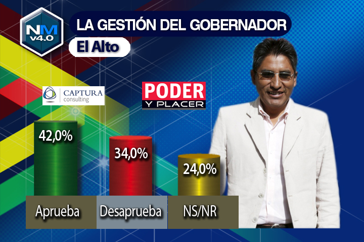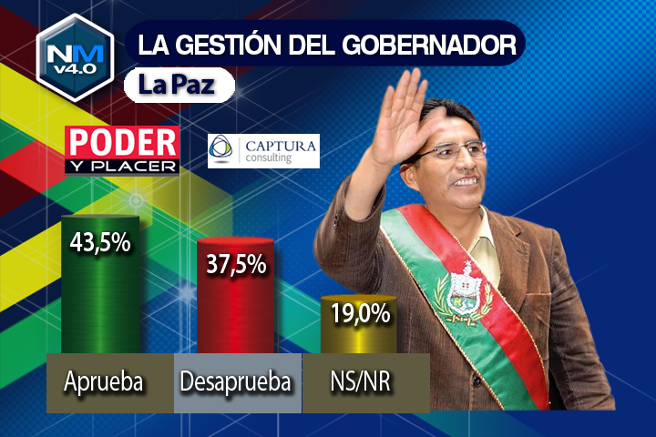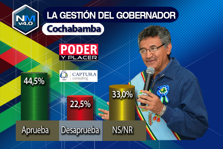 La Paz, 8 de agosto (ANF).- Cuando los gobernadores electos aún no han cumplido sus primeros tres meses en funciones, una encuesta aplicada en las cuatro ciudades más pobladas del país: La Paz, El Alto, Cochabamba y Santa Cruz, revela que Rubén Costas, autoridad departamental cruceña, es quien mantiene los niveles más altos de popularidad en el denominado eje central urbano de Bolivia. La encuesta tiene el patrocinio de la revista «Poder y Placer», y fue encargada a la empresa Captura Consulting. La zona encuestada concentra al 70% de la población boliviana.Los otros gobernadores evaluados son Félix Patzi de La Paz e Iván Canelas de Cochabamba. De entre los tres, solo este último pertenece a las filas del gobernante Movimiento al Socialismo (MAS). Los gobernadores fueron electos en los comicios del 29 de marzo y fueron juraron a sus cargos el 29 de mayo.Rubén Costas obtiene un porcentaje de aprobación del 69.7% de los cruceños encuestados, en una muestra representativa de 900 personas. Solo el 21.3% de los consultados desaprueba su gestión. El 9% no responde a la pregunta.  El 29 de marzo, Costas logró en las elecciones un respaldo del 59.4%. La encuesta de «Poder y Placer» estaría mostrando que una clara tendencia al ascenso (10 puntos más).En el caso de Iván Canelas, periodista, exministro, exdiputado y actual gobernador de Cochabamba, los encuestados que lo respaldan son el 44.5%. A su vez, el 22.5% consideran que no es un buen gobernador. Un porcentaje notable: el 33% prefiere no opinar. El hecho de que tantos cochabambinos se coloquen en una postura neutral es llamativo. Se considera que el respaldo mayor a Canelas viene de las zonas rurales, no incluidas en la muestra. Pese a ello, la población urbana en un 77.5% aprueba o se abstiene de criticar la segunda gestión masista en la gobernación.Si se compara la encuesta con los resultados de los comicios de marzo de 2015, en el caso de Cochabamba, Canelas obtuvo el 61.6% del respaldo electoral. Se habría producido entonces una caída del 17%. Sin embargo, hay que destacar que la encuesta no refleja el voto rural.En el caso de Félix Patzi, existen dos fuentes de datos, la de La Paz y la de El Alto. La composición social parece ser la misma en ambas urbes. Los porcentajes son muy similares. Los que respaldan al exministro de Educación son el 42% en El Alto y el 43.5% en La Paz. Los que desaprueban la gestión de la autoridad electa son el 37.5% en La Paz, y 34% en El Alto. Quienes prefieren no opinar son el 19% en La Paz y 24% en El Alto.En las elecciones de este año, Patzi logró el 50% de los votos. Su respaldo habría caído entonces entre 7 u 8 puntos.