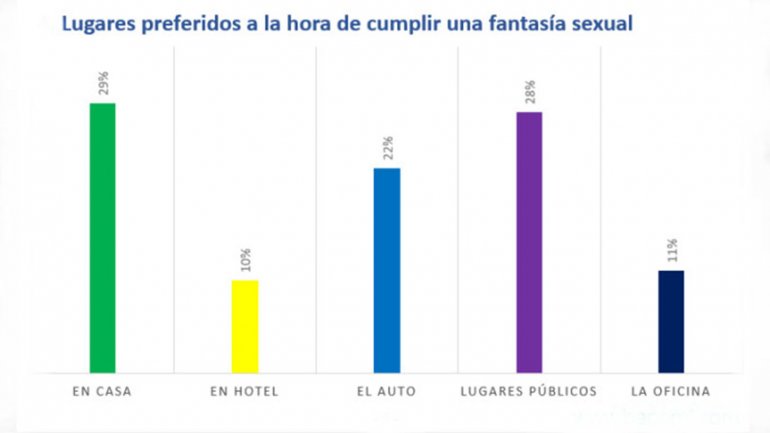 En Argentina, a la hora de pensar en fantasías sexuales, tanto hombres como mujeres tienen como mayor preferencia la participación de una tercera persona -el 27% para ellas y el 47% para ellos-. En segundo lugar las mujeres eligen el voyeurismo (22%) y los hombres, los disfraces (25%).