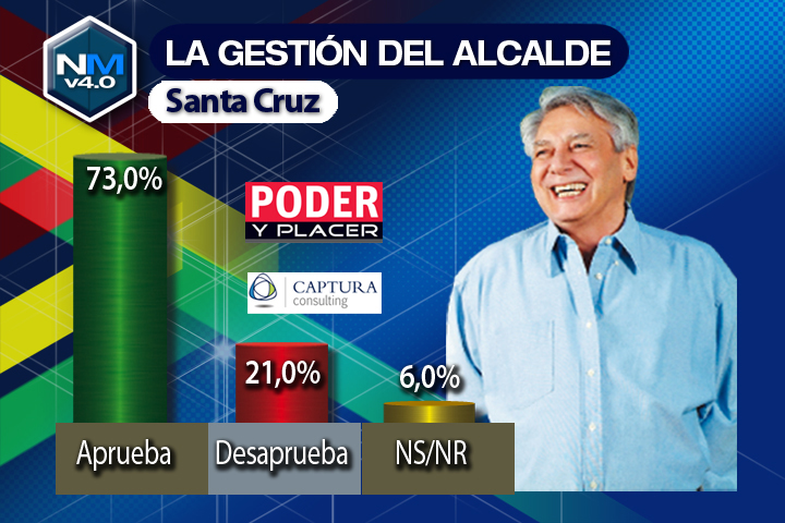 La Paz, 9 de agosto (ANF).- A pesar de que se murmura que ya no ejerce verdaderamente el cargo por sus 76 años de edad, el seis veces electo alcalde de Santa Cruz de la Sierra, Percy Fernández es el burgomaestre más popular del llamado eje central de Bolivia. De acuerdo a la encuesta de la revista «Poder y Placer», encargada a la empresa Captura Consulting, Fernández cuenta con un 73% del respaldo ciudadano.La consulta estadística fue realizada entre el 24 y 27 de junio a una muestra representativa de 900 personas en las ciudades de La Paz, El Alto, Cochabamba y por supuesto, Santa Cruz, lo que se conoce como el eje central, habitado por el 70% de la población boliviana. Las elecciones subnacionales se realizaron tres meses antes.El segundo alcalde más popular del eje central es Luis Revilla Herrero de la ciudad de La Paz con el 67%, seguido por el edil cochabambino José María Leyes con el 53.5%. Soledad Chapetón, la primera mujer alcaldesa de la urbe alteña se encuentra también en el tercer lugar con un idéntico 53.5%.Si se analizan los índices de desaprobación medidos por la encuesta, los resultados son diversos. Leyes es el alcalde con menor cantidad de repudio, solo un 14%, dado que el 32.5% prefiere no opinar sobre su desempeño público. A su vez, Chapetón es la autoridad más resistida de las cuatro, con un 29.5% de rechazo. A Parcy Fernández lo desaprueba un 21%, mientras que a Revilla, lo critica un 27% de los paceños encuestados.Los cuatro burgomaestres obtuvieron la mayoría absoluta en los comicios del 29 de marzo pasado. Revilla ganó con el 58%, lo cual implicaría que su nivel de respaldo ha subido en 9 puntos si se considera la encuesta de «Poder y Placer».Chapetón se hizo del poder municipal con el 54% del voto alteño. Comparado con la encuesta, su respaldo se ha mantenido casi intacto.En el caso de Leyes, fue ungido como alcalde con el 56% en la fórmula de Demócratas. Si se confía en que la encuesta de «Poder y Placer» registra su popularidad actual, habría descendido solo tres puntos.El contraste es claro cuando se analiza el caso de Percy Fernández, quien ganó las últimas elecciones un 42% de los sufragios. Su ascenso, de acuerdo a la encuesta, sería de 30 puntos porcentuales.
