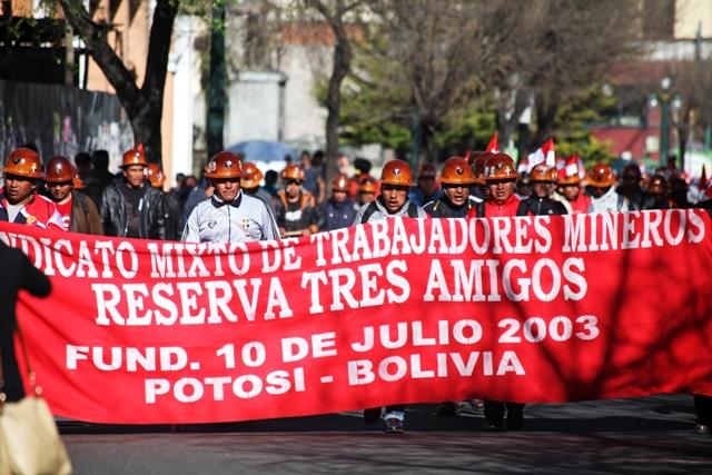 El Sindicato Mixto de Trabajadores Mineros Reserva Tres Amigos durante las protestas en La Paz (Foto: OXÍGENO)