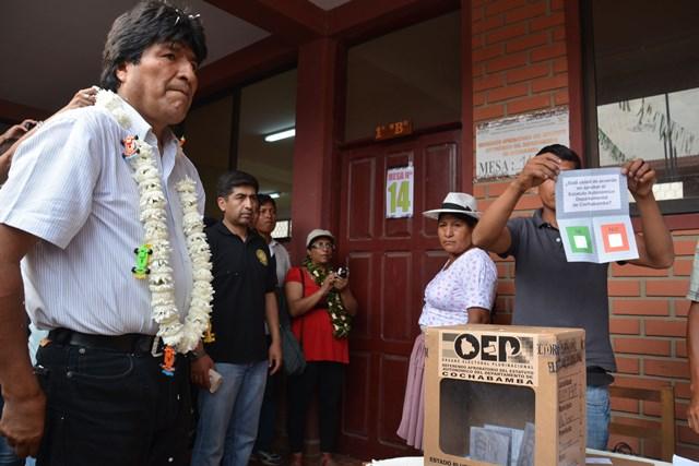 El Presidente Morales antes de emitir su voto (ABI).