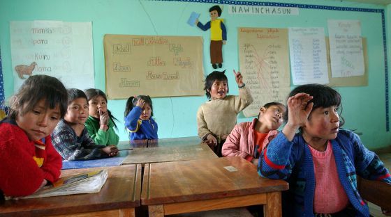 Niños estudiando quechua en Callatiac, en el departamento de Cuzco. / EFE