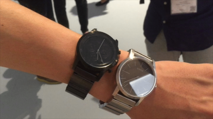Wena cuenta con un diseño de tipo circular, con botón físico lateral. Su pulsera de 22 mm es de eslabones con acabado de acero inoxidable (316L), mostrando un aspecto bastante elegante y trabajado. Es más bien grandote -me recuerda mucho al Moto 360- y a pesar de que en su esfera verás las típicas manecillas de toda la vida, su cuerpo pesa un poco. La culpa posiblemente la tenga precisamente la correa en cuyo cierre se concentra la parte divertida de este equipo y lo que lo convierte precisamente en un gadget.