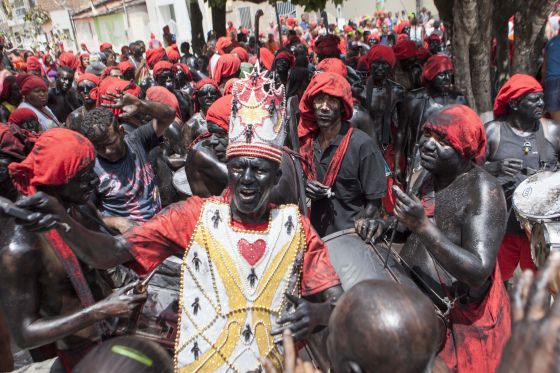 Todos quieren ser negros el día de la celebración, que empieza la madrugada de domingo. El cortejo va creciendo según avanzan las horas, seguido por lugareños y turistas, que improvisan ropa roja para parecerse a los Lambe Sujos, aunque a estos los venzan, al final de la fiesta, los Caboclinhos. Una derrota victoriosa. “Nunca he visto a un rey ser vencido de forma tan altiva, que sale con la frente en alto, como si no hubiera perdido la batalla”, bromea la antropóloga Beatriz Gois Dantas, de la Universidad Federal de Sergipe, que profundizó en los estudios sobre esta fiesta entre 1969 y 1990.La derrota forma parte de la narrativa, según los guardianes de la tradición, porque cuando los negros libres crearon la fiesta lo acordaron así con las autoridades. Si por ventura los Lambe Sujos saliesen victoriosos, podrían estimular a los negros que aún vivían en esclavitud a rebelarse.