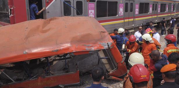 YAKARTA, Indonesia.— Un tren de pasajeros se estrelló contra un minibús el domingo en un paso ferroviario en la capital de Indonesia matando a al menos 18 personas y dejando a otros seis en estado grave.El conductor de autobús habría ignorado las señales de advertencia al cruzar la vía y fue arrollado por un tren en el oeste de Yakarta, dijo el jefe de la policía del vecindario de Tambora, Wirdhanto.El bus destrozado podía verse sobre las vías tras haber sido arrastrado por el tren hasta un andén cercano, a unos 300 metros (yardas) del lugar de la colisión.Trece ocupantes del minibús murieron al instante y los demás fallecieron en hospitales, dijo Wirdhanto, que como muchos indonesios utiliza solo un nombre.El conductor del minibús y su ayudante estaban entre los cuatro fallecidos en tres hospitales de Yakarta, donde otras seis personas siguen ingresadas en estado crítico, dijo Musyafak, director de la división de atención médica y salud de la policía de la capital indonesia.Ninguno de los pasajeros que viajaban en los ocho vagones del tren resultó herido, explicó añadiendo que todas las señales de advertencia de la vía funcionaban en el momento del choque. El convoy se dirigía a la localidad de Bogor, cerca de Yakarta, con unas 400 personas a bordo.Los accidentes en carreteras, así como los de trenes, barcos o aviones son habituales en Indonesia debido, en buena medida, a sus pobres estándares de seguridad.Fuente: www.primerahora.com